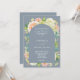 Todas las polvorientas invitaciones nupciales azules y blancas incluyen los detalles de la ceremonia en la parte delantera y más detalles en la parte posterior con letras blancas de moda. Las hermosas flores acuáticas incluyen hortensias blancas y verdes, rosas rosas y cremas, margaritas, tallos pequeños y hojas. COINCIDIENDO con los artículos de nuestra tienda.