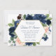 Invitación Moda florece | Marco dorado azul marino y rosa Rub