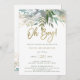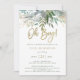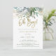 Estas elegantes y minimalistas invitaciones a la ducha para bebés cuentan con un moderno color de agua verde y hojas botánicas sobre un fondo blanco limpio con un falso guión moderno de oro que dice "¡oh, muchacho!"
