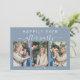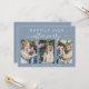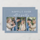 Moda azul polvoriento o boda privado invitación e invitación a la recepción. El frente cuenta con un collage de 3 fotos y "Feliz eterno después del Fiesta" en una tipografía blanca simple y un guión blanco elegante con toques, tus nombres unidos por un corazón y tu fecha de boda o recepción. En el reverso, personaliza tu invitación e invitación y agrega tus nombres en un guión tipo firma.