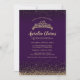 Invitación Moda Glam Purple Gold Purpurina Tiara Quinceanera