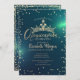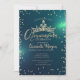 Invitación Moda Gold Tiara, Diamonds Green Quinceañera