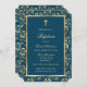 Invitación Moda Indigo tinte Oro Cruzado Guión Floral Bautism