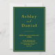 Esta elegante invitación a la boda de oro y verde es perfecta para un boda moderno. el diseño es sencillo, con una elegante caligrafía de oro sobre un fondo verde.