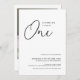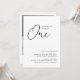 Celebra el hito de tu pequeña con esta elegante y minimalista invitación de cumpleaños. Con una tipografía limpia en blanco y negro con un guión elegante "One", este diseño es perfecto para los padres modernos que aman la simplicidad y la sofisticación. La parte trasera de la tarjeta incluye espacio para una foto de personalizable, una manera perfecta de compartir un dulce recuerdo o una adorable instantánea de tu novio o chica de cumpleaños. Completamente editable con los detalles de su evento, este diseño intemporal es ideal para una celebración de primer cumpleaños neutral y elegante.