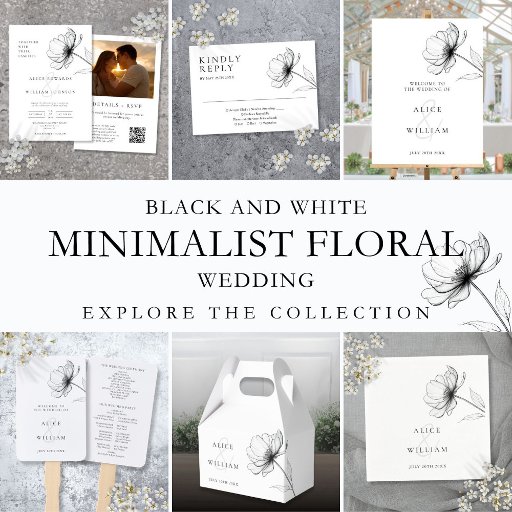 Black And White Minimalist Floral Wedding SuiteDiseñado por Pure Piglet Designs