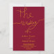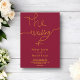 Esta elegante invitación a la boda de Borgoña y de oro es perfecta para un boda moderno. el diseño es sobrio y elegante, con una caligrafía dorada sobre un fondo burdeos.