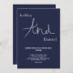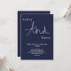 Esta elegante invitación a la boda azul marino es perfecta para un boda moderno. el diseño es sencillo, con una elegante caligrafía blanca sobre un fondo azul.