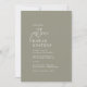 Esta moderna invitación a la boda de moda verde y amor es perfecta para un boda sencillo. El diseño de boho mínimo presenta una tipografía bohemia rústica única y elegante en un color de tierra de bosque verde oliva. La invitación dice 'nada de fantasía solamente amor'.
