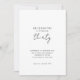Celebre con estilo esta elegante invitación minimalista de 30 años con un fondo blanco limpio, una tipografía moderna y un acento manuscrito. La parte trasera incluye espacio para una foto personal, añadiendo un toque único y personal a la celebración de su hito. Perfecto para una moda, fiesta de cumpleaños moderna.