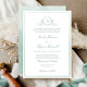 Invitación Moda Monograma formal Boda de acuarela verde pálid