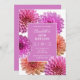 Honre a una mujer especial con esta elegante y femenina invitación a la fiesta de cumpleaños. Este diseño está decorado con flores de dahlia rosas y naranjas. Sencillo y moderno. Cada texto es personalizable para sus necesidades.