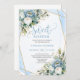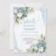 Invitación Moda Pastel Azul Flores de Oro Blanco Dulce 16