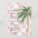 Invitación Moda Pink Squares Gold Palm Tree cumpleaños
