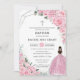 Invitación Moda Plata Floral Rosa Chica Bautismo Christening