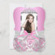 Invitación Moda Plata Rosa Bow y Foto Rosa Quinceanera