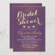 Invitación Moda Purpurina morado y dorado ducha espumosa de n