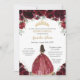 Invitación Moda Quinceañera Rich Burgundy Red Floral Princesa