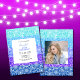 Invitación Moda Rainbow Blue Stripes Floral Photo Birday