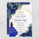 Invitación Moda Real Floral Azul Princesa Oro Quinceañera