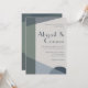 Elementos: formas geométricas abstractas, bloques de color, fuente sans serif de moda para nombres, tipos de letra serif subexpresados para detalles. Colores: salvia, menta, pistacho, evergreen, azul polvoriento, botánico, marina, noche, medianoche, cetáceo, pergamino, gris claro, platino. Temas: modernos, minimalistas, abstractos, limpios, alegres, fríos tonos, sobrios, boho, scandi, contemporáneo, industrial. Colección: Moda Resumen Boda azul turbio de la marina de salvia geométrica Tipo de producto: Invitación clásica - Vertical