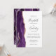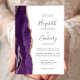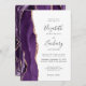El borde izquierdo de esta elegante y moderna invitación a la boda incluye un borde de batido color púrpura con un falso purpurina de oro rosa. El texto del personalizable combina la escritura a mano de carbón gris, el copperplate y las fuentes cursivas en un fondo blanco. El reverso presenta un diseño de agate dorado a juego con el color púrpura y el rosa.