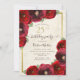 Esta moda floral \25ª invitación de fiesta de cumpleaños incluye rosas rojas acuarelas sobre un fondo dorado brillante con un marco dorado brillante falso y todos los detalles de su fiesta a personalizar.