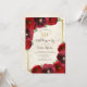 Esta moda floral \30ª invitación para la fiesta de cumpleaños incluye rosas rojas acuarelas sobre un fondo dorado brillante con un marco dorado brillante falso y todos los detalles de su fiesta a personalizar.