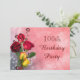 Elegante, personalizado y elegante invitaciones a la fiesta de cumpleaños número 100. Elegante y glamuroso, personalizado / personalizado fiesta de cumpleaños 100 invitaciones a las mujeres. Con 3 hermosas rosas rojas medio abiertas y 2 rosas amarillas fotografía de arreglos de ramo con ostentosas cuentas e imágenes de flores impresas en un fondo rosa negro oscuro bonito. Estas modas, elegantes, sofisticadas, modernas y floridas invitaciones a la fiesta de cumpleaños están decoradas/impresas en ambos lados / tienen doble cara y son particularmente aptas para eventos de primavera y verano, pero pueden ser usadas para cualquier temporada. Estas modernas, modernas, contemporáneas, elegantes y románticas invitan a una fiesta de cumpleaños. Si necesitas ayuda para personalizar tu producto, por favor contacta conmigo a través de mi tienda y estaré encantado de ayudarte.