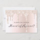Pregúntale a tu criada de honor con estilo con esta invitación purpurina y de glam. Este diseño de plantilla de moda presenta un fondo de brillantes goteos y chispas de purpurina rosa con un nombre que personalizar y la pregunta "¿Serás mi empleada de honor?". Diseñado por Susan Coffey.