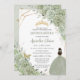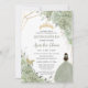 Invitación Moda Sage Green Floral Princesa Oro Quinceañera