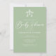Esta moda, simple invitación a una ducha de bebé verde salado, incluye tu tipografía blanca minimalista debajo de un móvil de juguete dulce para un niño o chica. Elegante invitación neutral de género.