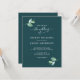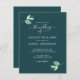 Elegante, moderna y sencilla invitación a la boda con moda de color negro, caligrafía manuscrita y un elegante toque de follaje de eucalipto verde sobre un fondo verde azulado profundo. Simplemente agregue los detalles de su boda. Diseñado exclusivamente para usted por Happy Dolphin Studio. Si tiene alguna pregunta, póngase en contacto con nosotros en happydolphinstudio@outlook.com. ¡Estamos encantados de ayudarle a hacer de su boda el día más hermoso!