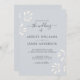 Elegante, moderna y sencilla invitación a la boda con caligrafía de guion de moda de marfil y un elegante toque de follaje de flores de marfil sobre un fondo azul pastel. Simplemente agregue los detalles de su boda. Diseñado exclusivamente para usted por Happy Dolphin Studio. Si tiene alguna pregunta, póngase en contacto con nosotros en happydolphinstudio@outlook.com. ¡Estamos encantados de ayudarle a hacer de su boda el día más hermoso!