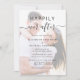 La moderna invitación a una boda azul polvorienta con tu foto rebosante con tu invitación personalizada, "Feliz eterno después", escrita en una mezcla de tipografía simple y un guión de moda con toques y detalles de tu invitación en una tipografía elegante. Al dorso, sus nombres y la fecha de su boda se unen con el corazón.