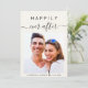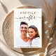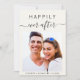 Invitación a una boda crema ligera moderna con tu foto, "Feliz eterno después" en una tipografía simple y un guión de moda con toques y tu nombre y fecha boda unidos por un corazón. Al fondo, personaliza tu invitación en tipografía elegante.