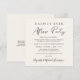 Moda de color crema clara o invitación boda privada e invitación a la boda. La parte delantera presenta "Feliz eterno después del Fiesta" en una mezcla de letras simples y un guión moderno. Personalice su invitación e invitación y agregue sus nombres en un script tipo firma. En la parte posterior, introduzca la dirección del sitio web de su boda para crear un código QR que sus huéspedes puedan escanear en línea a RSVP y obtener detalles adicionales, como instrucciones y alojamiento, y agregue sus nombres y fechas.