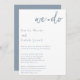 Moda simple Dusty Blue Intimate Boda Micro Ceremony Courthouse Invitación - Una bella y delicada ceremonia de boda íntima invitan. Con una polvorienta paleta de colores azul y blanco y "We Do" en caligrafía de guiones. Perfecto para una ceremonia de boda en un juzgado o ayuntamiento, fusilamiento, micro boda o cualquier otra pequeña reunión para celebrar sus nupcias. Con un diseño minimalista, esta plantilla editable de invitación a boda está disponible como descarga digital.
