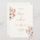 Invitación nupcial de Boho con una tipografía de escritura simple y elegante y pampas floral. Fácilmente personalizable con sus detalles para invitaciones de boda personalizadas