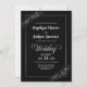 Invite a sus amigos y seres queridos a su boda para que presencie y celebre el comienzo de su viaje de toda la vida con esta moderna invitación negra. El texto del personalizable le permite añadir sin esfuerzo sus nombres, fecha de boda y los detalles necesarios de su celebración. Diseñado para una pareja de expertos en presupuesto, la ubicación de la recepción, la solicitud de respuesta de RSVP, los detalles del alojamiento y cualquier otra información que sus huéspedes puedan necesitar se pueden incluir en el reverso de esta invitación, ahorrando dinero en papel extra. Celebra tu historia de amor como nunca antes con esta invitación a la boda. Hay una variedad de tipos de papel y estilos de esquina disponibles para sus invitaciones únicas, junto con la opción de descargar.