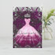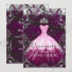 Invitación Moda traje purpurina floral púrpura rosa Quinceane