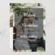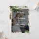 Una moderna y moderna invitación a la boda de doble cara en una que muestra la información de tu boda sobre una de tus fotos favoritas con un overlay transparente negro acentuado por un elegante guión en blanco. Fácil personalizable con los detalles de su ceremonia boda en blanco para un ambiente romántico, moderno y elegante. La parte posterior de la tarjeta incluye una segunda imagen, las instrucciones RSVP en línea y la fecha de vencimiento, un código QR de personalizable para dirigir a sus invitados al sitio web de su boda, sus monogramas y la fecha de su boda.