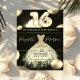 Elegante vestido de moda dorado Invitación a la fiesta de 16 cumpleaños.