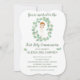 Invitación de Primera Comunión con motivos de eucalipto en acuarela de la colección ALEXIA con borde curvo