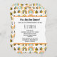 Invitación a la ducha con un bonito fondo estampado. Espectaculares abejas y arcos de lluvia con pequeños corazones y estrellas dispersas por todos lados. Adorable y delicioso.