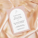 Set the tone for a modern yet romantic celebration with this minimalist wedding invitation featuring a soft arch silhouette and delicate botanical detail. The warm blush backdrop frames a clean white center, creating a refined contrast that feels both contemporary and timeless. Subtle greenery at the top adds an organic, elegant touch without overpowering the design.