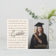 Celebrate your graduate’s big achievement with this modern black and gold graduation party invitation featuring a stylish script title and a beautiful photo layout.