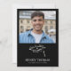 Celebrate your graduate with this modern black and white photo graduation announcement featuring a clean, minimalist layout and classic cap illustration. Perfect for high school or college graduates, this design highlights your favorite photo with elegant typography for a timeless look.