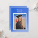 A unique and modern card with a modern blue, abstract color scheme. Similar blue background on the back of the card containing invitation details. The photo and all text are easily changed with the template. If you have a website set up for the graduation and/or party (free sites online), type in your own URL where indicated and Zazzle will create your own QR code. Or you can delete it and rearrange the text. Suitable for a high school or college graduation. Selecting “Personalize this design” offers you several edit options to easily change the text (wording, plus type font, color, size, position) and to edit the design elements. You may also want to scroll down to the section “Transfer design to a product” for a few suggestions about other items this design can be used on.