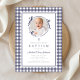 Modern Blue Gingham Photo Boy Baptism Invitation. For best results upload a square image of the baby.